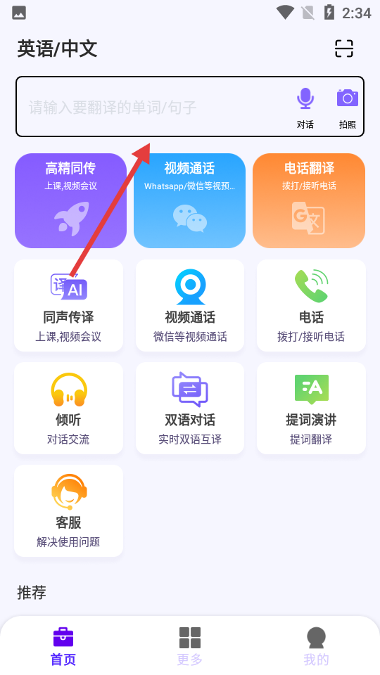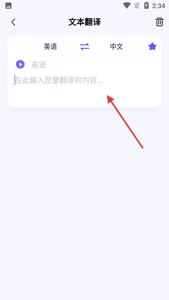 1、在首页点击翻译输入框,进入文本翻译页面。