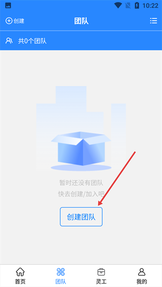 2、在团队页面,找到“创建团队”按钮并点击,进入团队创建的信息填写界面。