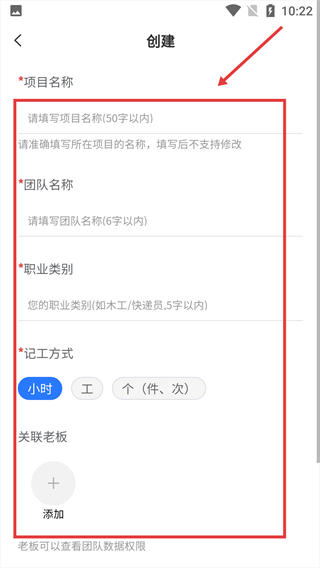 3、需填写带*的必填项,包括项目名称、团队名称、职业等类别。