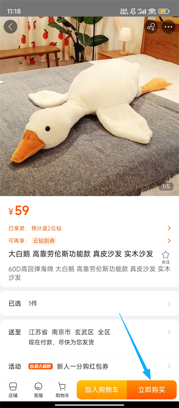 3、在商品详情页,确认商品信息,然后点击底部橙色【立即购买】按钮,这样就到支付环节啦。