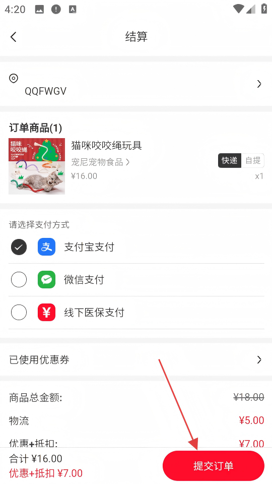 4、在结算页面,选择支付方式,确认订单商品、金额等信息后,点击【提交订单】,完成购买。