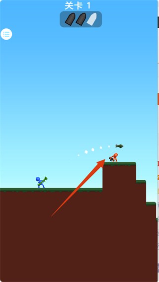 2、射击时注意调整瞄准角度,确保弹药命中敌方橙色角色,消耗其生命值,逐步推进【关卡1】的战斗进程。