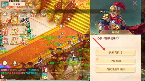 2、找到程咬金,选择【挑战竞技场】,进入竞技场界面。