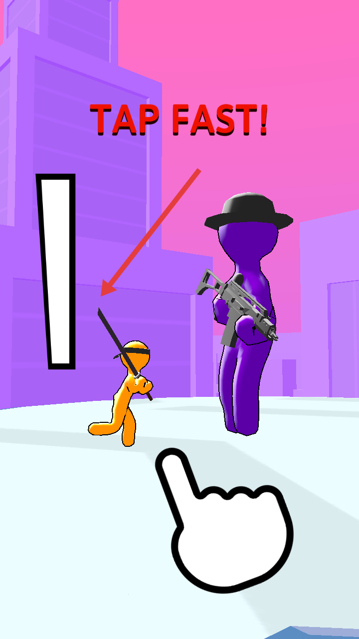 3、与紫色敌人战斗时,快速点击屏幕TAPFAST发动攻击,击败对手。