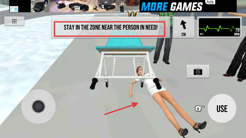 3、抵达病人住所后快速送医,寻找对应画面的过程,传递救援成功的满足感与真实感。