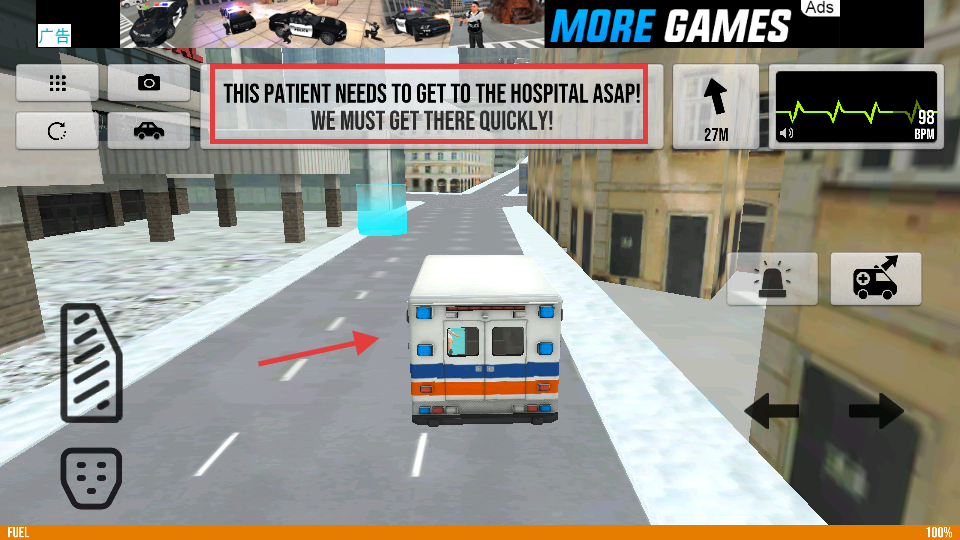 2、救护车初始任务围绕驾驶展开,要求规避道路障碍,核心考验操控精准度与反应速度。