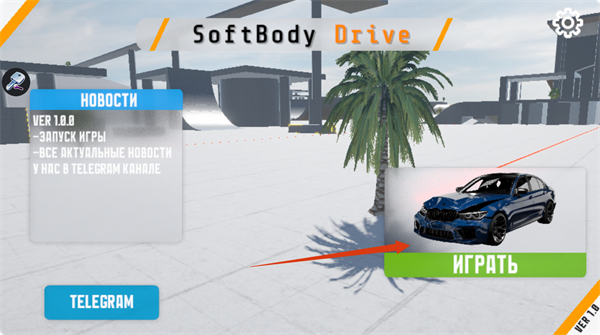 1、游戏开始时,点击【ИГРАТЬ】按钮,进入【SoftBody-Drive】的驾驶游戏场景。