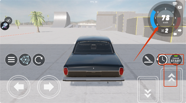 3、驾驶时,点击油门按钮加速,留意速度表变化,同时注意路况,避免碰撞。