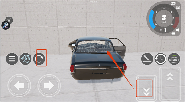 4、若车辆碰撞损坏,点击左侧的重置按钮,可重新开始驾驶,继续游戏挑战。