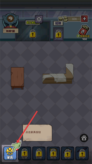 2、点击底部功能栏中的“家具”按钮,打开家具选择界面。