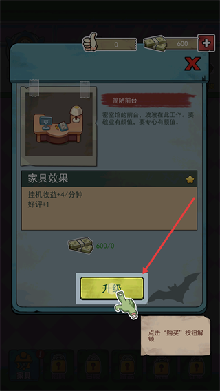 4、点击“升级”按钮,完成该家具的解锁与升级操作。