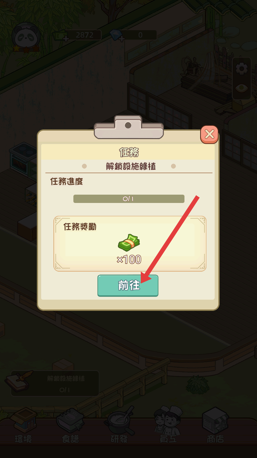 2、在任务弹窗中,点击红色箭头指向的【前往】按钮,执行任务。