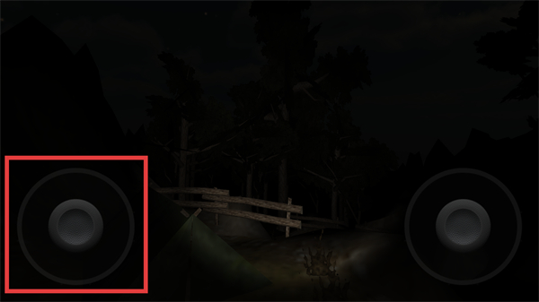 2、进入游戏场景后,操控红框内的虚拟摇杆移动角色,探索森林环境,寻找线索推进流程。