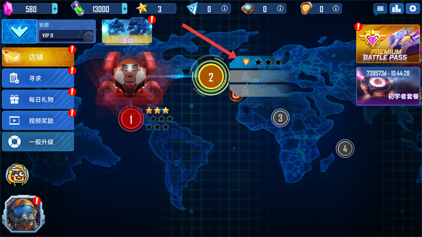 1、在世界地图界面点击标有【2】的关卡,进入第二关开始挑战。