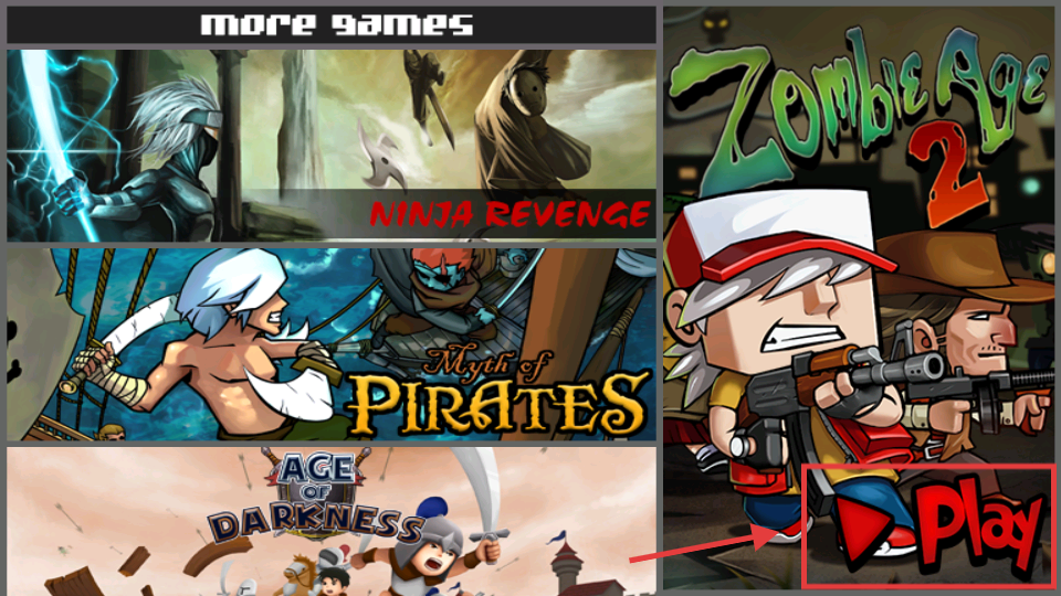 1、点击【Play】按钮进入【僵尸时代2】,选择角色后即可开启射击僵尸的冒险。