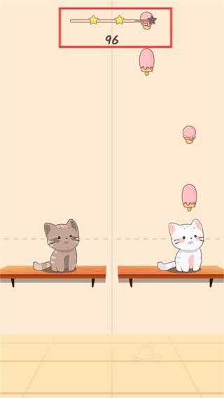 1、享受同时操控两只猫咪的新鲜感,每接住冰淇淋都能体会到满满的成就感,让休闲时光更有乐趣。