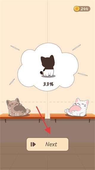 4、关卡结束显示进度【33%】与得分【249】,点击【Next】按钮,进入下一轮互动关卡。