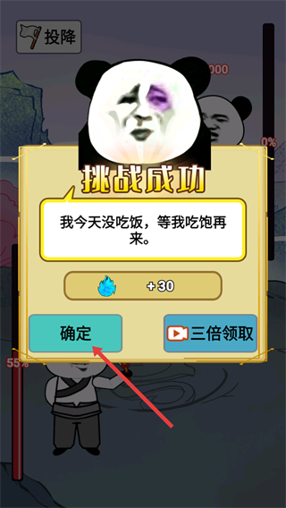 4、挑战成功后,点击【确定】按钮,领取蓝色水滴奖励,提升角色实力。