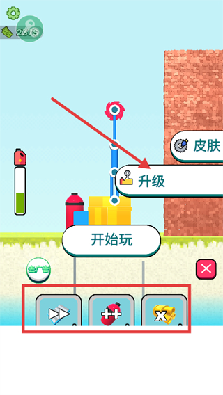 3、操控升级后的挖矿机械挖掘砖块,收集掉落的金币,积累资源以支持后续升级和皮肤更换。