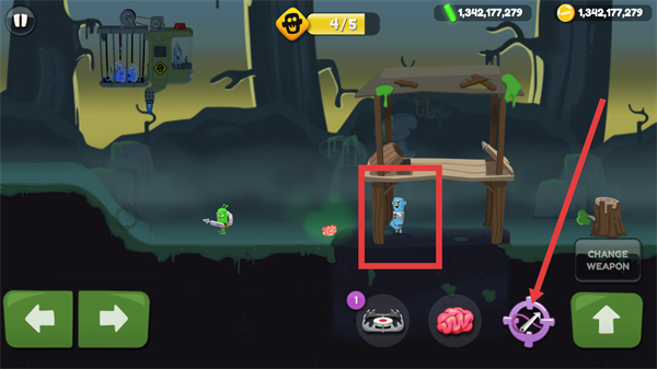 3、待僵尸靠近诱饵,点击武器图标释放武器抓住僵尸。