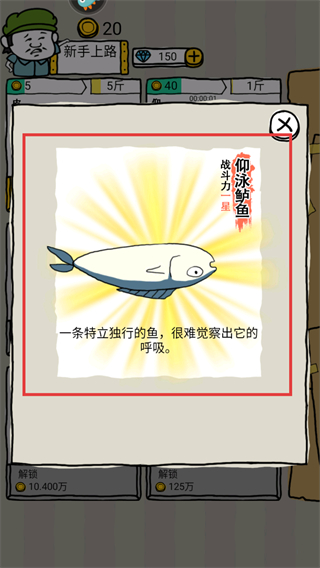 2、解锁不同的灵兽(如仰泳鲈鱼),了解其战斗力和特点,为后续的喂养和经营做准备。