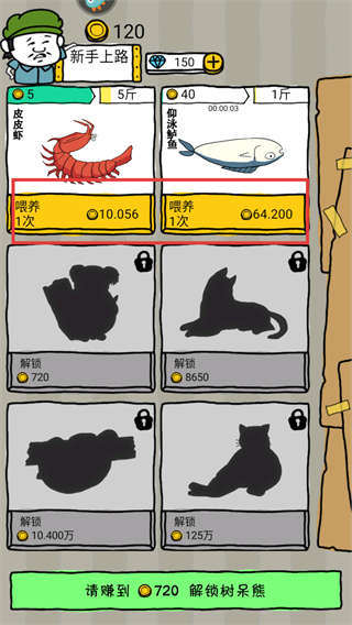 4、当积累足够的金币后,解锁新的灵兽(如树呆熊需720金币解锁),丰富灵兽厂的品类。