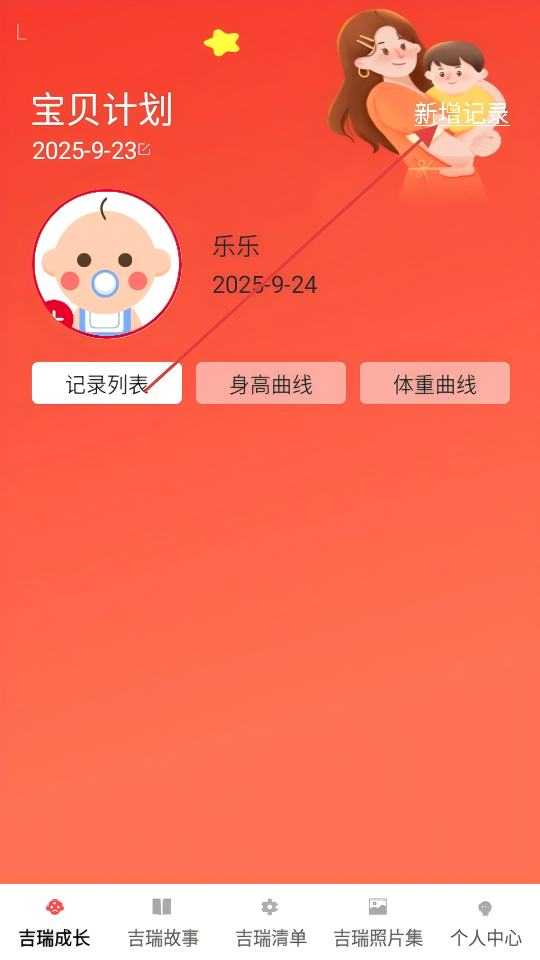 1、打开“宝贝计划”应用,点击【新增记录】。