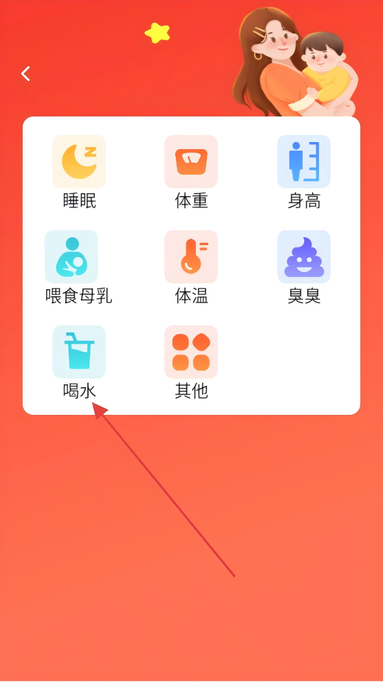 2、在弹出的记录类型中,选择要记录的内容,如【喝水】。