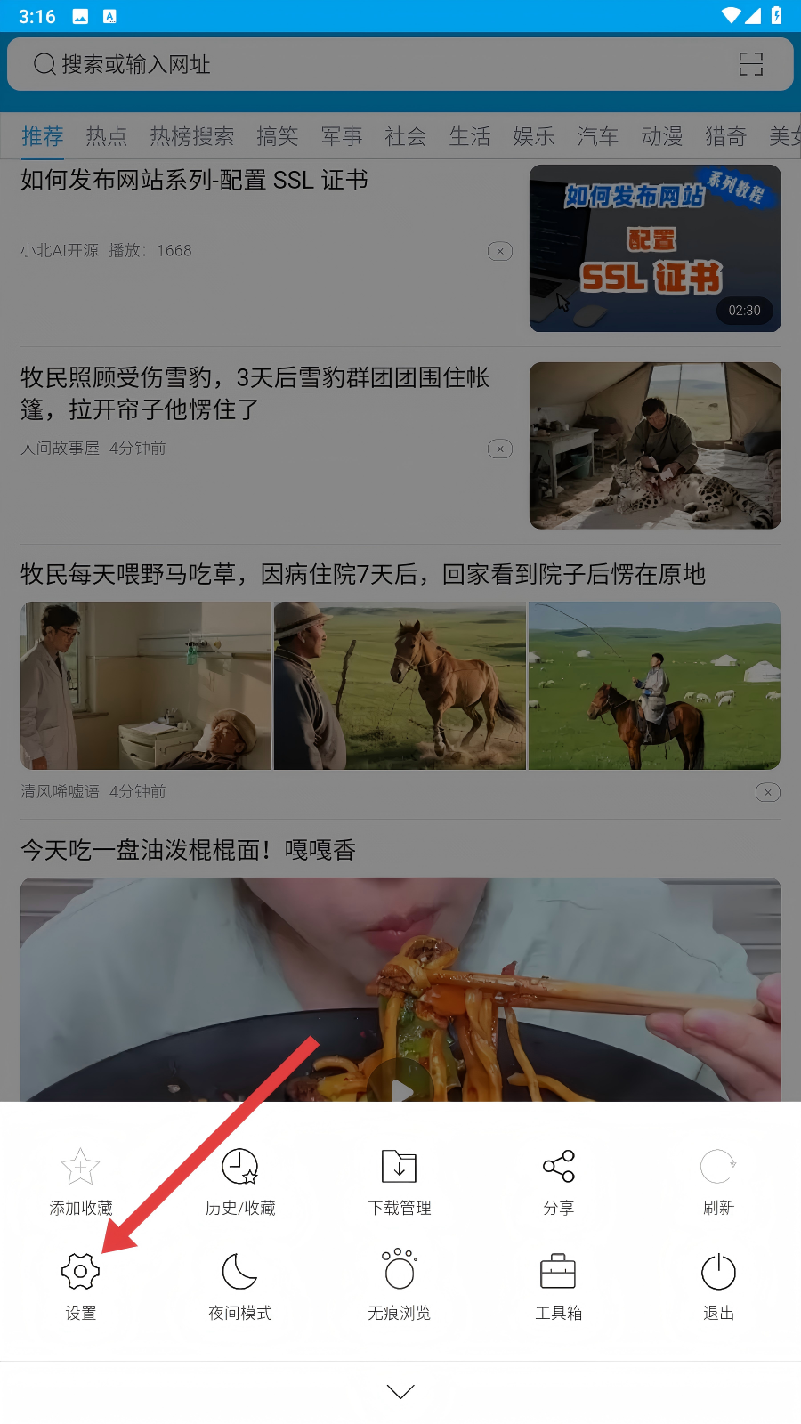2、在展开的菜单中,点击【设置】,离去除广告更进一步哦。