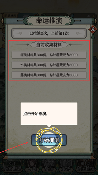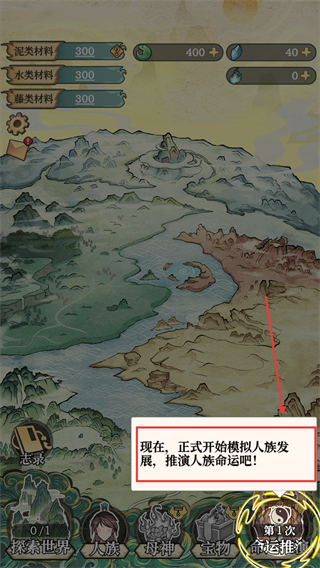 1、点击【命运推演】按钮启动人族发展模拟,开启创造人类与构建世界秩序的进程。
