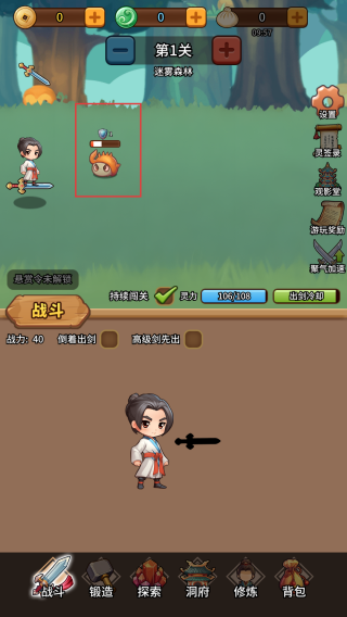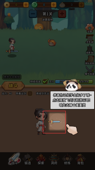 2、点击释放剑,开始战斗,熟悉战斗操作,推进游戏进程。
