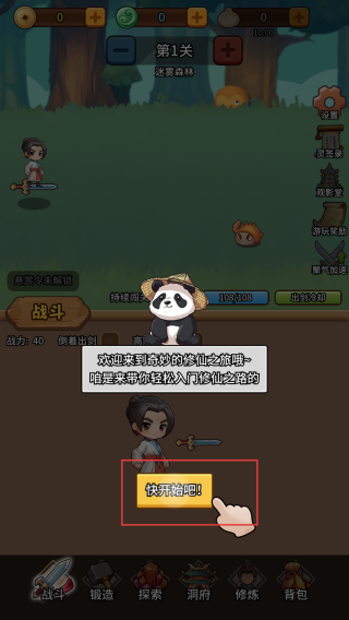 1、点击【快开始吧】进入游戏,开启修仙冒险,跟随引导踏入修仙之路。