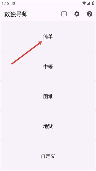 2、进入【简单:1】关卡,点击空格后选择下方数字,按数独规则填充,推进关卡进度。