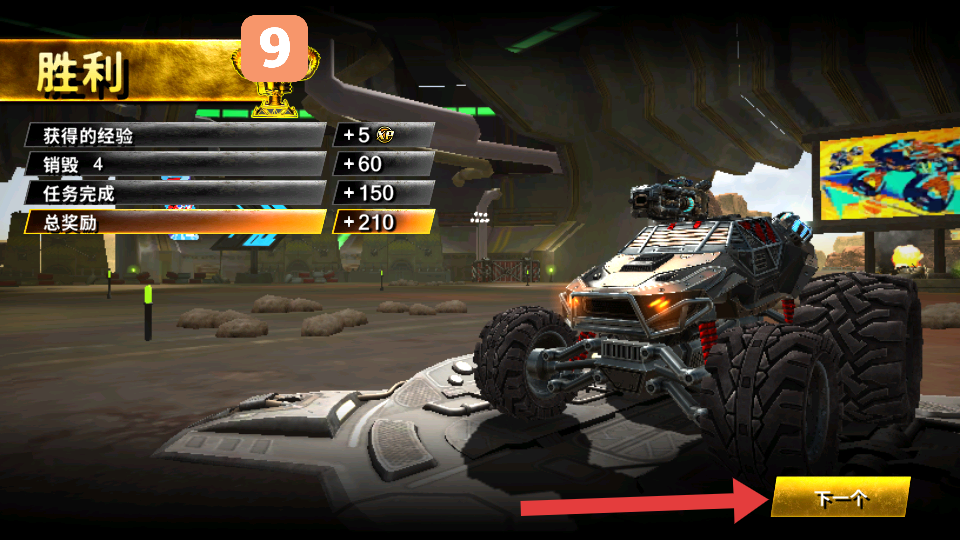 4、比赛胜利后,领取经验、金币等奖励,点击【下一个】回到游戏主界面。