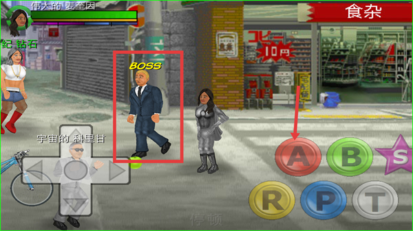 2、在剧情场景中,瞄准红色框内的BOSS角色,点击右侧的【A】等攻击按钮发起攻击,与BOSS战斗。