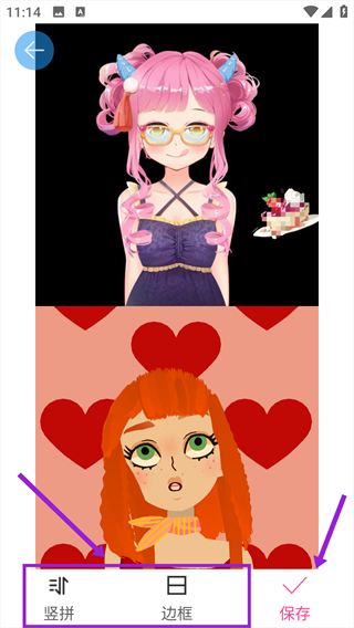 4、可通过【竖拼】【边框】等功能调整排版效果,确认后点击【保存】完成本次操作。