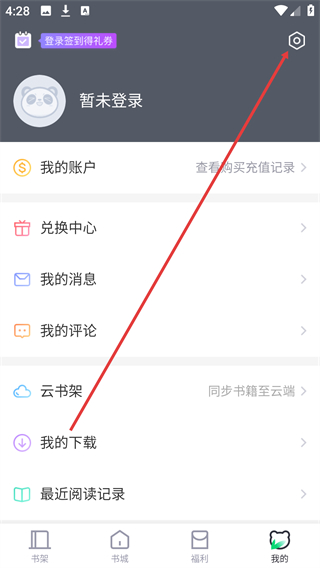 1、在【书架】页面,点击底部导航栏的【我的】按钮,进入个人中心界面。