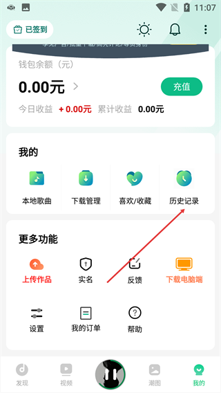 在我的界面中,您可以查看本地歌曲,下载管理,我的收藏,收藏的歌曲以及上传歌曲和图片。