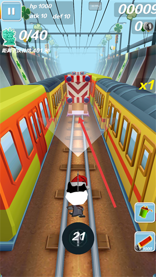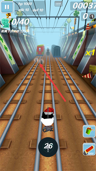 3、在跑酷场景中,收集红色框内的绿色道具,这些道具可能会为角色提供增益效果,助力跑酷进程。