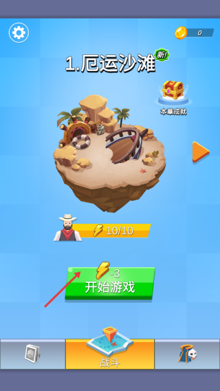 1、点击【开始游戏】,进入厄运沙滩关卡,开启冒险挑战。