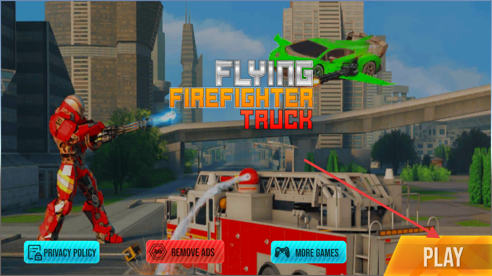 1、点击【PLAY】进入游戏,选择关卡,开始飞行消防车的救援冒险。