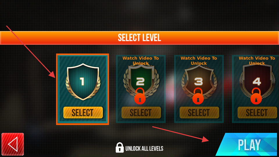 2、在关卡选择界面,选择已解锁的Level1,点击【PLAY】进入游戏场景。