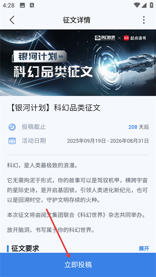 3、点击【立即投稿】按钮,跳转至作品页面。