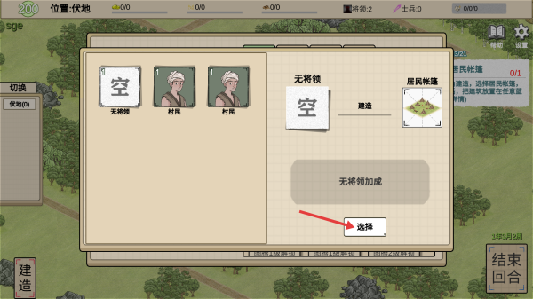 3、在居民配置界面点【选择】,分配村民,完善部落的人员配置环节。