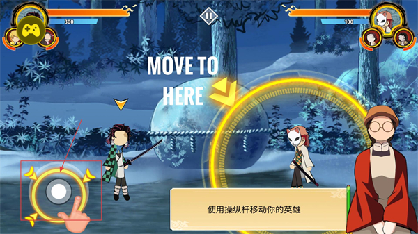 1、战斗中通过操纵杆控制英雄移动,按照指引移动至目标区域,这是调整战斗位置、接近敌方单位的基础操作。