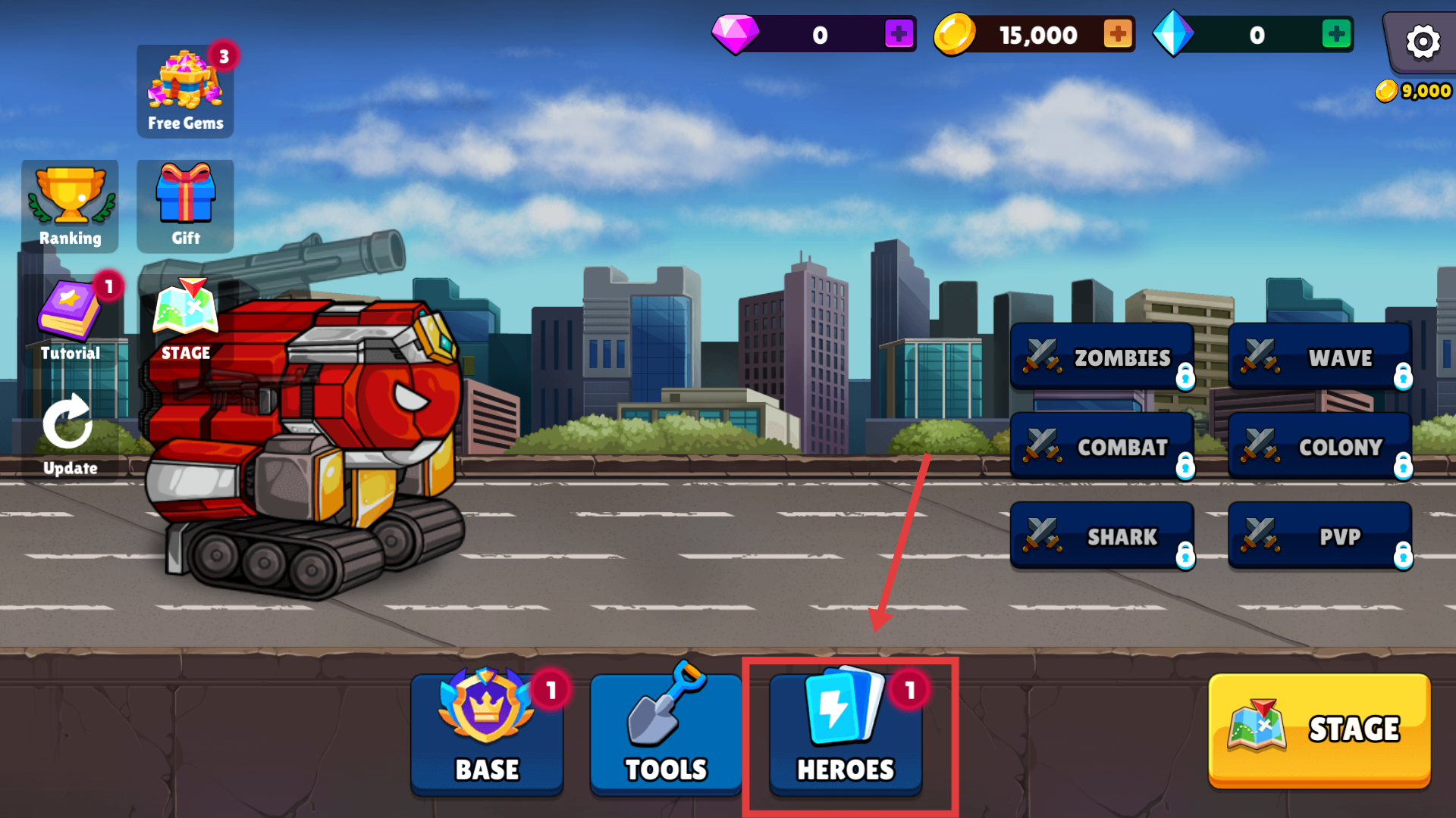 1、点击界面下方的【HEROES】按钮,消耗资源招募不同特性的英雄,为后续战斗做好兵力准备。
