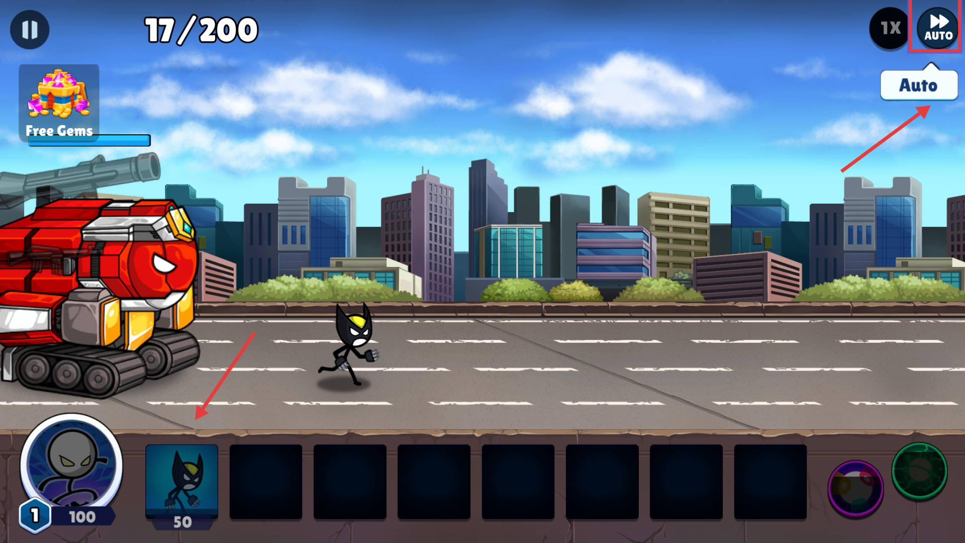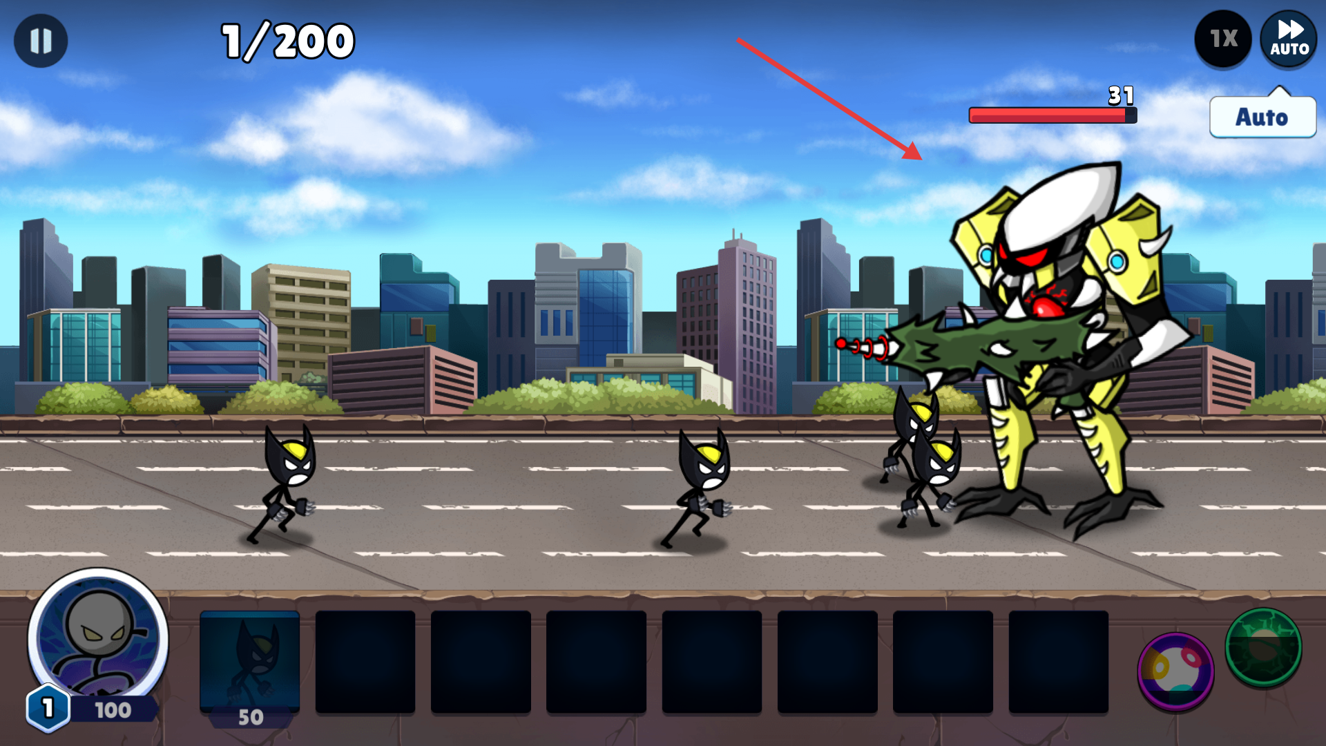 3、战斗时点击右上角的【Auto】按钮,让英雄自动攻击敌人,可专注排兵布阵优化战斗策略。