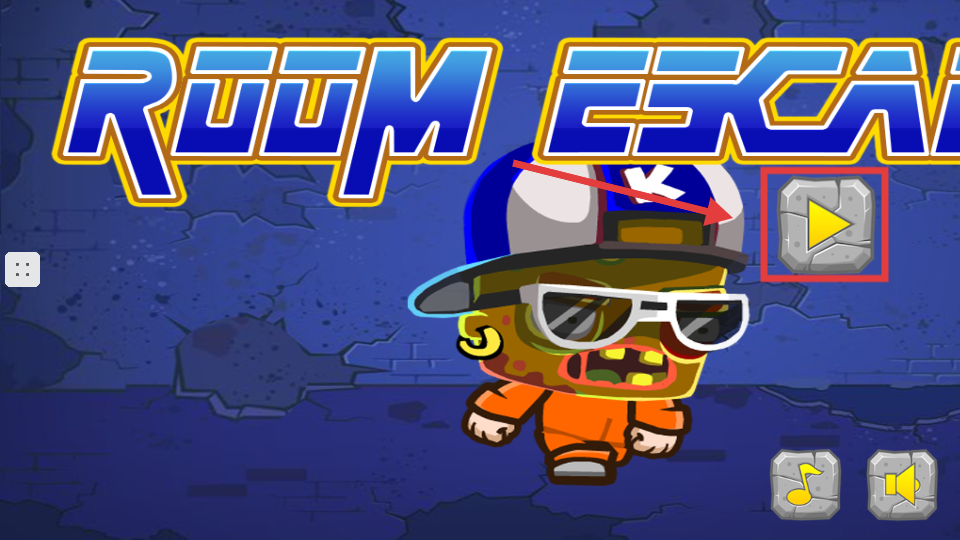 1、游戏标题界面显示【ROOM-ESCAPE】,点击右侧带黄色箭头的【开始按钮】进入游戏。