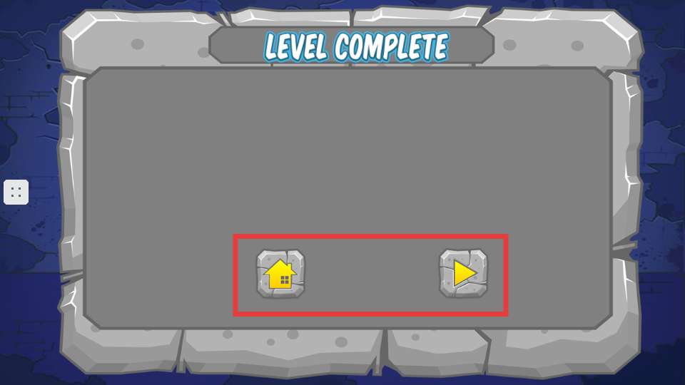 4、通关后显示【LEVEL-COMPLETE】界面,可选择【回家按钮】或带箭头的【继续按钮】。