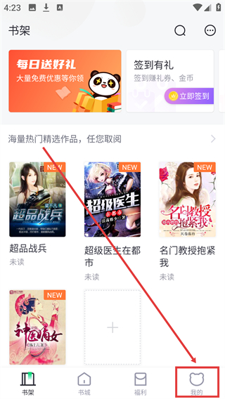 1、进入软件我们直接来到书城,点击底部我的选项。